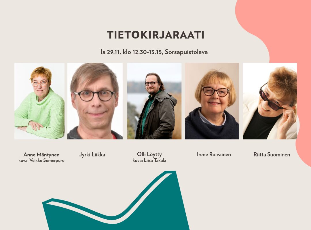 Viihdyttävä Tietokirjaraati ruotii uutuustietokirjoja Tampereen Kirjafestareilla. Raati pidetään lauantaina 29.11. klo 12.30–13.15 Sorsapuistolavalla Tampere-talossa.