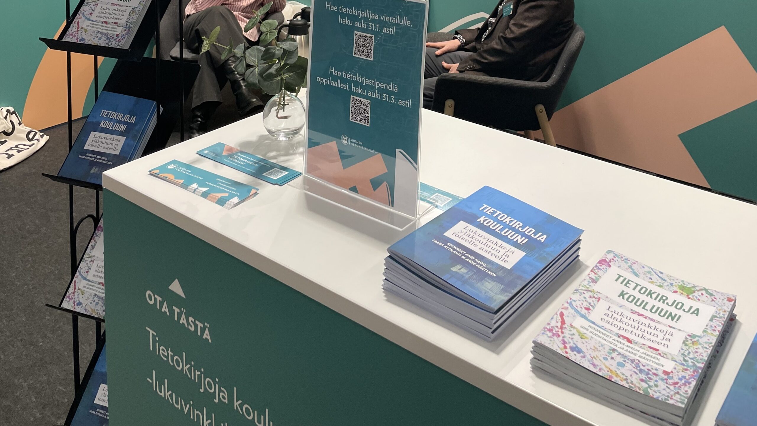 Osastollamme 6e58 jaamme tietoa apurahoista, kouluille maksuttomista tietokirjailijavierailuista sekä tietokirjastipendeistä. Jäsenille sekä oppikirjailijuudesta kiinnostuneille on kahvitarjoilu. Osastollamme on myös jaossa Tietokirjoja kouluun! -lukuvinkkikatalogeja.