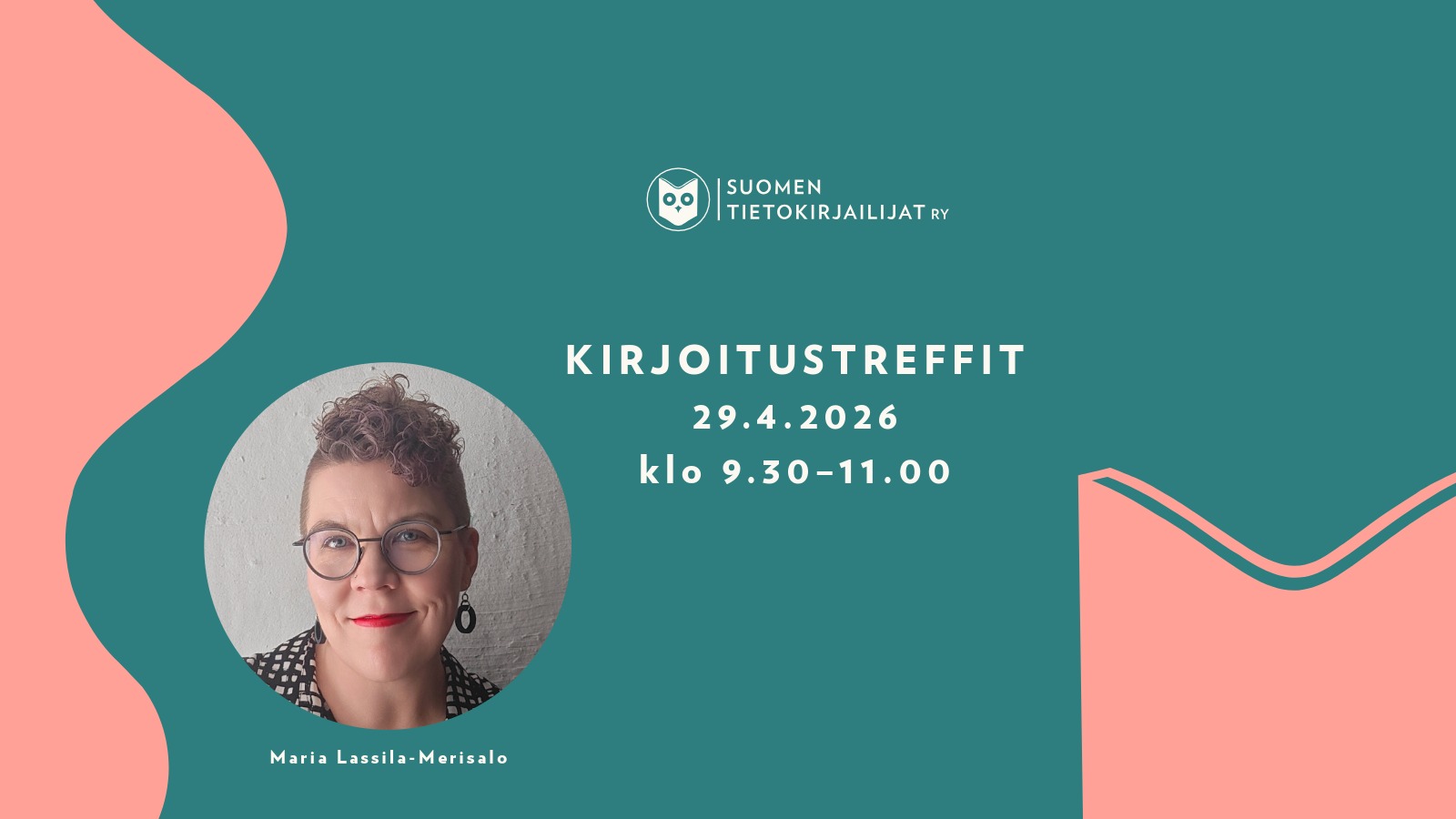 Tietokirjailijoiden kirjoitustreffit järjestetään keskiviikkona 29.4.2026 klo 9.30–11.00 Google Meetissä.